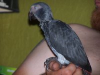 As some of you may know Judygram took Lilo into her home. After much consideration it was decided that he might be a better fit for my household. We brought him home last night. As soon as we brought Lilo into the house he was saying hello and asking for water. He didn't seem to mind the curious dogs or his new environment. Lilo is flighted and we knew that he didn't like his cage so we decided to try and carefully transfer him from his travel cage to his big cage without letting him out. We had just gotten home and weren't ready for him to be free yet. Let me just say that it didn't work out the way we wanted. He quickly scooted out of his travel cage and squeezed his way out and flew to my sons shoulder. He was very sweet and seemed to go to everyone in the house. After spending about an hour with him we decided it was time for Lilo to go back in his cage so we could clean up from our trip etc. Well, Lilo was not going to go in his cage on his own. If we made any kind of movement toward his cage he was off and flying. Needless to say after a frustrated hour and with lots of help from us Lilo was returned to his cage. I know that many on this forum do not agree with clipping a birds wings. I am one of those people actually. My TAG is not clipped and I can't imagine ever having to do it. That being said, I did give Lilo a very slight clip this morning. I talked to a few people about it and after considering the stress it was causing everyone including him, we decided it was the best thing to do. He was absolutely going to hurt himself while he was frantically trying to avoid his cage with no regard for where he was flying in a new environment. Ever since his clip we have had his cage door open. Lilo has gone in and out of his cage on his own all day. That of course is the good news. The bad news is that obviously we lost a little trust. I can't begin to explain to you how horrible that makes me feel. However I am confident that we will quickly earn that back. I am sure by the time his feathers come back in he will understand some rules and limitations and be flying once again. I want to thank Eve and Judy for trusting me with this beautiful Grey. He is a wonderful addition to my family and I know we will bring each other much joy. Pictures coming soon I promise.