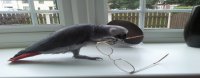 4. Hi guys/gals thanks for the fast replys! he was an offspring from one of our familys greys they kept him for a while because he had "special" qualities haha i see what they meen. And he wasnt talking very well when we first got him, he seemed to be squeeling and stuff. but hes learnt very fast its amazing. iv attached a pic of charlie this morning playing in the window