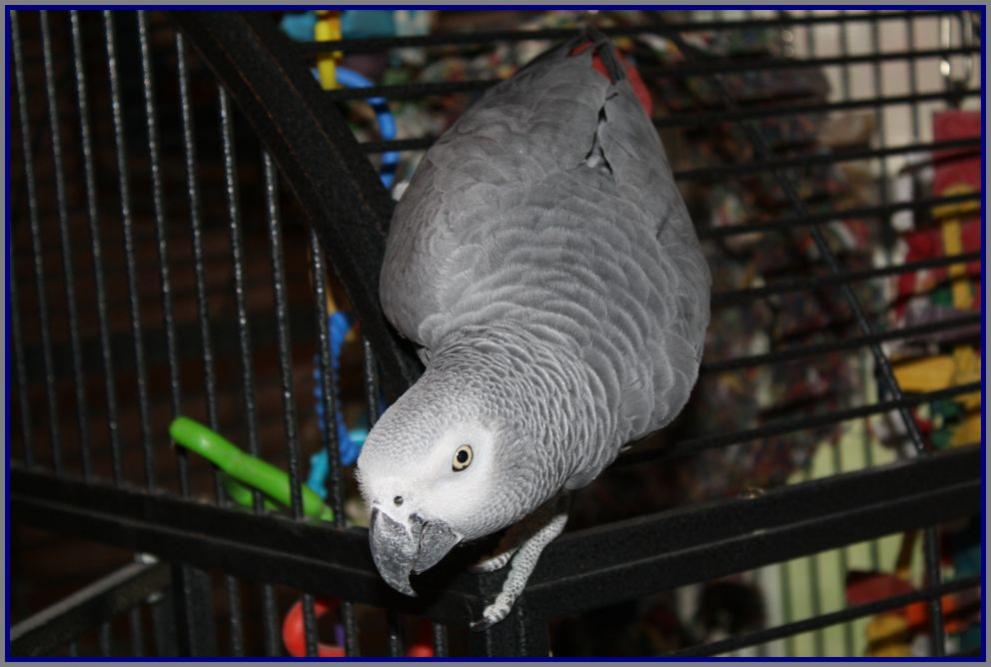 OK, I've been looking through lots of pictures on this forum and I want to know if you guys all pull out the brand new toys for pictures? Everyone has such pretty toys and cages and they look like bird rooms from magazines. Rebel's toys, even her newest shiniest toys look like they have been run over by the lawn mower, and I don't really consider her destructive. Perhaps I should change that opinion! How do you keep everything so neat and new looking?? I found her sitting on her "atom" type toy, something she never does, so I ran to get the camera and when I looked at the pictures, it looks like I stuffed her in a frayed yarn ball!!! My Poor Birdie!!!