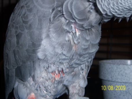 Is this what a bird looks like when they are molting or perhaps she has decided that plucking is not for her. The little pins sticking all over her look so painful, but she doesn't seem to mind. They are turning into cute little feathers now. Could this be what is making her grouchy? I hate being a new mommy and not knowing everything!!! Aly~ and HellRaiser Rebel