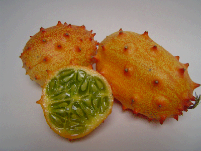 I decided to buy one of these Kiwano Melons for Earl the last time I went grocery shopping and he's crazy about this. He eats it rind and all, and so far none of it has ended up on the bottom of the cage. This fruit is native to africa, not sure if it naturally occurs in the same area as wild African Greys though.