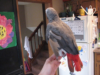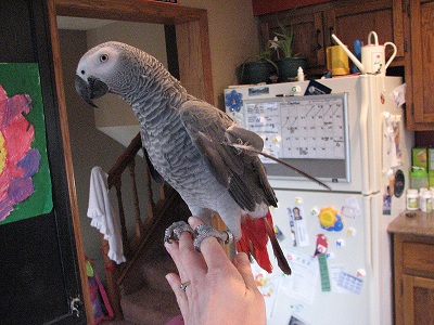 My grey is now 6 months old and he loves me and only me. He will put up with my 8 yr old daughter but not my husband. My question is this. As soon as he steps up and has a chance he walks quickly up my arm to my shoulder. If I am on the couch and want to hold him he isnt happy on my arm or finger he always wants to be on my shoulder. Because of his desire to be on my shoulder he is always trying to get there. Now he started to try to fly from my arm to my shoulder because its faster. I have tried to keep putting him back where I had him- and then I tried putting him on or in his cage when he tried but neither seems to make a difference. Not sure if there are any tricks out there to keep them from trying to go to your shoulder all the time. Any suggestions would be greatly appreciated. Thanks Melanie