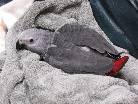 14. This morning, I played with him on the floor, rooling toys around with my nose, shaking them in my teeth. Dragging things by him to get him to play, and he engages a bit. Does anyone have some playtime activities they do that really engages their feathered friend? After we played a little bit, I bring him into the bathroom while I shower, and for some reason...this is the time he starts getting creative with the noises he is making, and i think he tries to talk. Everytime I hear something that sounds like an attempt to speak, I try to let him know that is good. So, any playtime activities or observations that you have made while raising your baby Grey would be cool. I find that I can never seem to have enough toys for him, and toys can get expensive. Looking for any ideas. Thank you all for any advice. Here is a picture of my lil baby when he was 8 weeks and still at the breeders home...