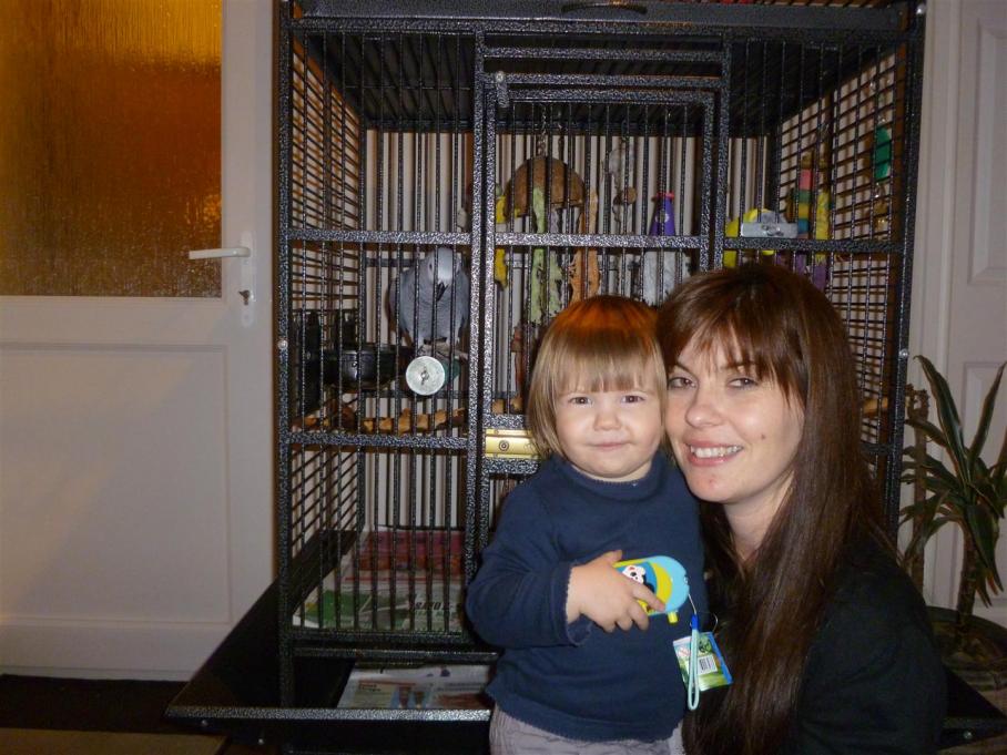 Well, little grey is finally here. Sitting happily in the cage chatting away. Amazing how comfortable he/she was when she arrived, straight out of the box & on to my shoulder. You would think this little grey knows me & had been here forever. Considering how greys normally are, I'm so surprised how she has settled in so quick.
