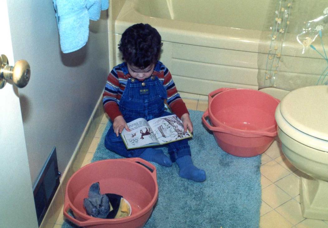 2. Well, I've been reading the forums for about a year now, so I figured its about time to make an introduction. My name is Ian, and.... ... this is Abbey. She is just over a year old now, and I've had her since 14 weeks. I've always wanted a CAG, and after last summer I was finally able to afford one. My mother used to raise CAGs in our back yard (ornithologist from UC Davis), she had two breeding pairs that were... frisky. The whole family was a part of the process, even us when were were quite young. The little kid there is me over 20 years ago reading to my namesake in a bucket. Mom named them after family members... we had to branch out pretty far after a couple of years, and then extend it to friends. She taught biology in high school and would bring them to class; everyone loved it. (How many biology teachers have incubators full of baby parrots? : ) ) So if you bought a CAG in Northern California during the early 90's, it might have been one of hers. Anyway, back to Abbey. Although she drives me insane, her antics are quite humorous. From throwing rocks at my girlfriend (quite deliberately, it's hilarious), to setting traps for the dogs (drops food on the ground, and when they go to eat it, she tries to bite their tail), she keeps us busy. She isn't talking yet, and judging from my colorful language, I am not sure if that is a good or bad thing. Just wanted to introduce myself, so hello everyone. I'm studying for the bar right now, so I'm off to go learn some law. I'll start joining the conversations in the other forums, now that I might actually have something to add. I do want to thank everyone for the posts and information though, this place has been a lifesaver. It both gives good information and lets me know that I'm not the only one with [insert infuriating problem].