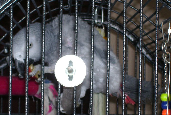 Sorry, terrible camera and shooting through the cage...I will try to get some better ones when my husband is here to bird wrangle (bird wrangle = keeping him occupied so I can take a photo of anything besides a close up of his beak). LOL
