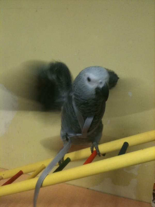 With the toys, all the ones in his cage he is fine with he's had them for a few weeks, but we don't want him to become phobic so we bring him a different toy from home everday so he can get accustomed to new toys and so when he cones home it isn't so bad with the toys, we don't leave then there though but we introduce them to him, only one a day. Some he loves right away and some it takes time for him to warm up to them.