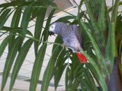 Tattletale goes to work every Friday and talks non stop to everyone. He comes to the command "step up." He can say many phrases as well as mock many sounds. Some of his favorites are, "Hello Buddy" ( when walking through the front door), "Good Sugar" (and makes the kiss sound when you place your mouth to his beak for a kiss), "I'm a good chicken" (and he actually "bach-bach-bach" like a chicken), "Yummy Good" (at meal times and he always eats when we do and eats pretty much what we have and still has his pellets when he desires them).