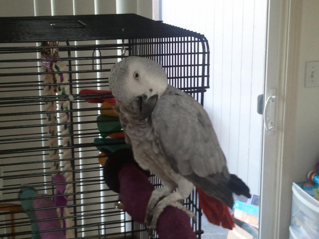 Well, our family has been researching birds, (parrots in particular) and decided that we wanted an African Grey. The question was, do we get a baby, or do we adopt an older bird? We decided to adopt a 9 year old Grey, and brought her home last night. She is getting situated rather well, but takes better to men (me) than women (the wife). She let me pet/scratch her head from the very beginning, but would not "step up" for me at all last night or earlier today. We had a break through a bit ago and she is finally stepping up for me. She is quite the spoiled eater through, and so we will be working on that as time goes by. This forum seems to be a great place for info, and so you'll see me around from time to time. Thanks!
