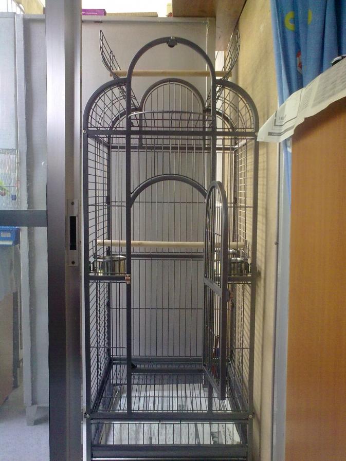 Hi guys, Since I bought Mikko he's been staying in a small cage: ________________ |Height: 54.5 cm | |Width: 42 cm | |Depth: 31.5 cm | |________________| So I decided to buy him a big one with the money I got from my summer job: _________________ |Height: 164 cm | |Width: 58 cm | |Depth: 58 cm | |________________| Unfortunately this new cage won't fit in my room so I had to put it on my room's balcony. It's covered from 3 sides basically (wall, door, closet) so I don't think cold will be much of a problem. However I do worry that it will be a problem when it comes to training and bonding so I'm thinking of putting a T-stand in my room and a leg chain on it so that he can be with me when I'm home (Though I'm still unsure of the leg chain thing ) Any advice? Regards Joe