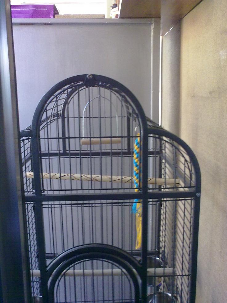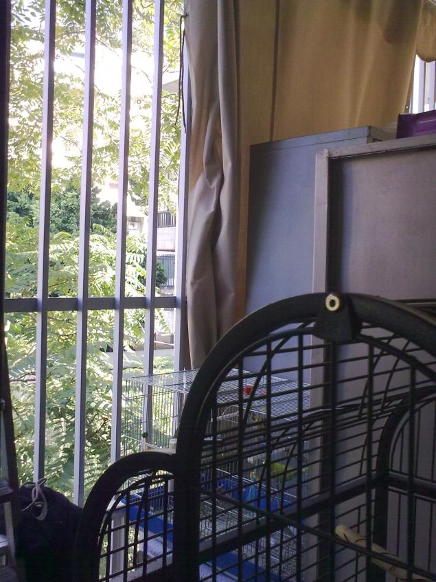 And BTW, when I say "outside", this is what I mean: As you can see the cage is surrounded by the grey closet's back, the wall, my glass door (I took the pics from this side) and finally the opened side of the balcony which has a curtain that can be closed during the winter (I'm going to buy a transparent one so that sunlight would penetrate but not wind and rain). Hope that clears things a bit