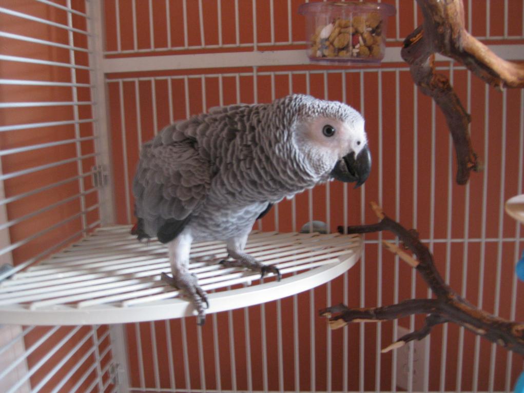 I am concerned about Quinn. I know that Greys have a reputation for being clumsy but I have lived with two other Greys and they were never that clumsy. I am worried that Quinn may have a problem either with his eyes or neurologically. He falls a lot, and seems to feel his way around the cage and other places. I am pretty sure that he has at least some vision. Just the fact that he wants to peer out from his cover in the morning. If he wasn't seeing anything I doubt he would do that. Quinn seems normal in other respects. He was hachted 3/13, and he is now copying sounds that I have taught him. He never takes a treat out of my hand, maybe he doesn't see it? Anyone else have this problem with clumsiness? I would love some feedback on this. He has been like this since I got him and I think that the breeder must have known there was a problem, I noticed it but he was young and I thought maybe that was why he was like that. He knows his cage and does better there. I put a lot of perches in the cage so that he could grab on to something on the way down and that has helped. He was long clipped when I got him and I am thinking of shortening the clip. When he flys he usually doesn't land on anything and doesn't have a nice landing. I think it might be better if he did not fly at all. Feedback would be very welcome.