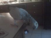 7. Hi everyone, I'm a new member with a 1 year old CAG, Simon. Looking forward to learning all that I can to keep my African Grey happy and healthy from the experienced owners, and hearing about your birds and other pets. We fell in love with this guy at our first meeting. I waited about 10 years, until the time was right before actually committing to the time involved for care and training of a CAG. Now that I'm retired, I was ready for the challenge. This guy is simply amazing, and I can't believe his intelligence! He is learning to talk and speaks very clearly, using my voice and at times my son's voice. What a character! We never know what will come out of his mouth! Our family also consists of 3 dogs, a GSD, Schnauzer and an Ibizan. One Himalyan cat, Bubba and a Cockatiel, Sully. Simon loves them all but especially the German Shepherd. He bosses him around and tells him to "sit" then tosses pellets and fruit to him. We live in the country and Simon is learning the bird whistles and calls from the many species that live in our evergreen trees. Sometimes it hard to tell if it's him or the birds outside. It's incredible how fast these birds learn.