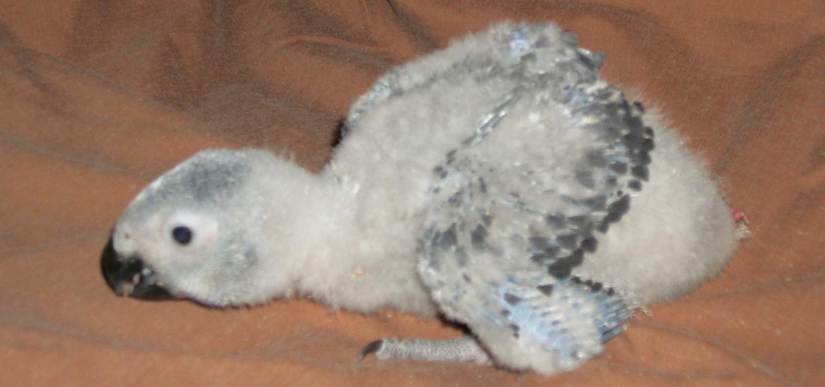 Hello everyone, this is my first time posting here. My name is Amber, and I live in NC. I am semi new to CAG'S, but not to birds as a general term. I have worked in many pet stores in my life, and was a volunteer at a bird rescue a few eyars back. I used to live in Indianapolis, but relocated to NC 2 years ago. I have taken care of greys in the pet stores, and rescues. I was actually always in charge of the bird room in the stores I worked at. I got my first birds when I was 14. I got 2 male cockatiels, and I still have them to this day...they are now 15 years old. I also have a Quaker Parrot named Kiwi. She is my little green shadow. My cockatiels prefer to not be bothered often. When I got them I was all they knew...now I have kids, and everything else, but overall...they have adjusted well. I wanted to join this forum becuase I am a firm believer that no matter how much you think you know, you can always learn something new. I am expecting my first grey sometime in the near-ish future. I am getting him from Lea and Bob at Five Oaks Aviary. They have been wonderful to work with. When I contacted them, they happened to have one baby left (I had been looking for the perfect place to get my baby for 6 months) so it just felt meant to be. My baby was hatched 10/27/11, so is still very young. We will eventually do DNA sexing, and I can't wait! I am just excited to know, I guess. Everything here at home has been prepared for our babies arrival, and now it is just a waiting game. Lea is very good about updating me on my baby, and I have attached the pics I got of him/her a week or so ago. These are all I have so far, the holidays keep people very busy. I will post more when I get them. It is great to have found this forum, and I thank everyone who has made it possible!