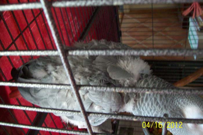 All those fluffy pics are after shower. He loved it! Makes me happy! LOL I saw some pin feathers on his chest and belly. Hoping the aloe helps ease the way! -