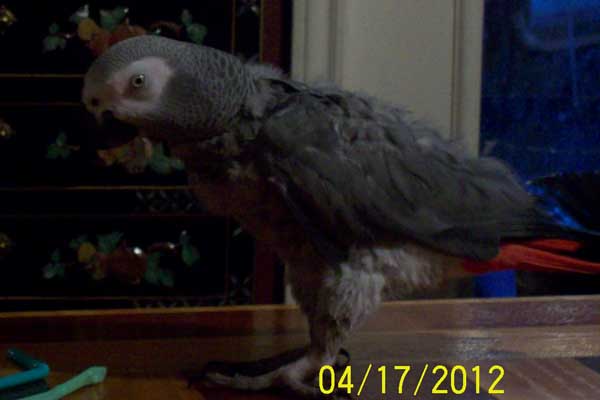 Thanks everyone! We are all doing well today. Buddy had some banana, carrots, yams and snap peas. He doesn't like broccoli. He also ate some granola. I tried not to give him any of his junk food today, but I did give him a bowl of his seed mix and added the pellets...he's going around the pellets. I am going to try soaking them in apple juice I think and also mix it into his yams...I'll just mush them up. But he will eat from my hand and let me pet his beak today. I think he wanted scritches, but I wasn't really sure and didn't want a nip again. We are leaving him in his cage today and maybe tomorrow. I have to bird proof my office before letting him in here since my office has the door to outside that I let Shylo out and in...I'm thinking one of those magnetic screens as seen on tv...don't know yet. I do know that I haven't done my homework that I have due today as I can't leave Buddy alone! LOL He was dancing with me to "Do a Little Dance"...hehe he stomps his feet. He does have two bare spots on his belly that he plucked...have not seen any plucking since getting him home. I have sprayed him...he loves it. Thinking I need to do the aloe..his skin looks really dry. He has downy feathers all on his belly. They said that he's still growing in from his molt? I don't know, but will take him to the vet for a check up. Well, without further ado....Heeerrrreeee'sssss Buddddddy!!! In the last three you can see his feathers maybe? I have more pics on my phone, but can't transfer them here for some reason...I'll try again though.