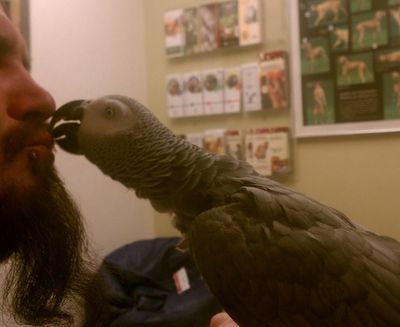I haven't had the honors of this happening to me yet and not sure if I look forward to it. When they do this they actually regurgitate and it comes out of their beak?!?!? Gross hahha
