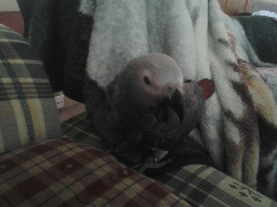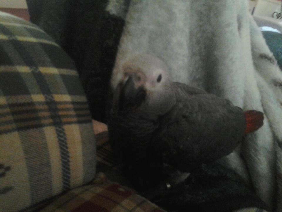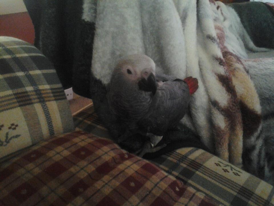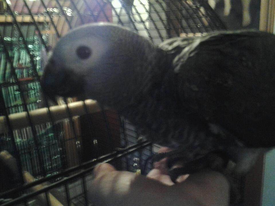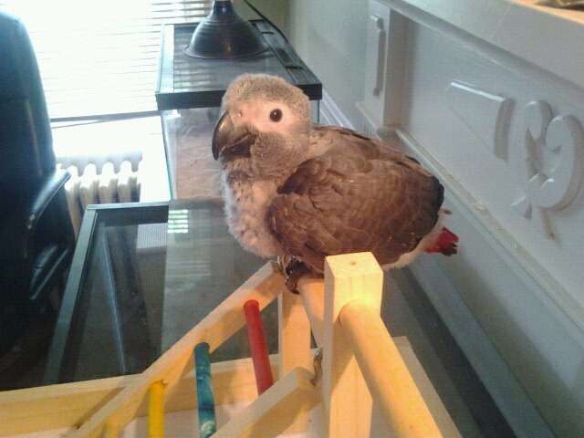 Hi my name is Wendy and my little mans name is Lido. Lido is going to be 9 weeks old tomorrow. He is my first Grey, but I do have a U2 and a B&G Macaw. They are both in their twenties, so the baby thing is all new to me. Lido has stolen my heart in the three weeks that I have had him. Went to the vet last week and got a clean bill of health, he weighed 511 grams. He is currently handfeeding 3 times a day and doing alot of picking from the mix that I make for my birds. He has gotten very vocal in the past week and is doing well with stepping up and perching. I love when he runs around on the floor, drops down on his belly and flaps his wings likes there is no way anyone is going to stop him from taking off.