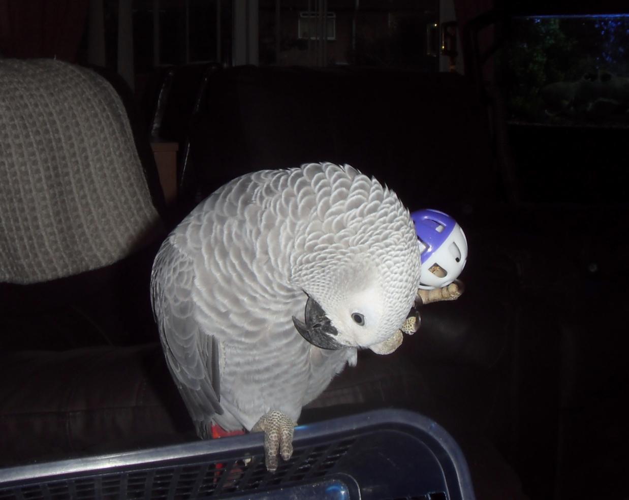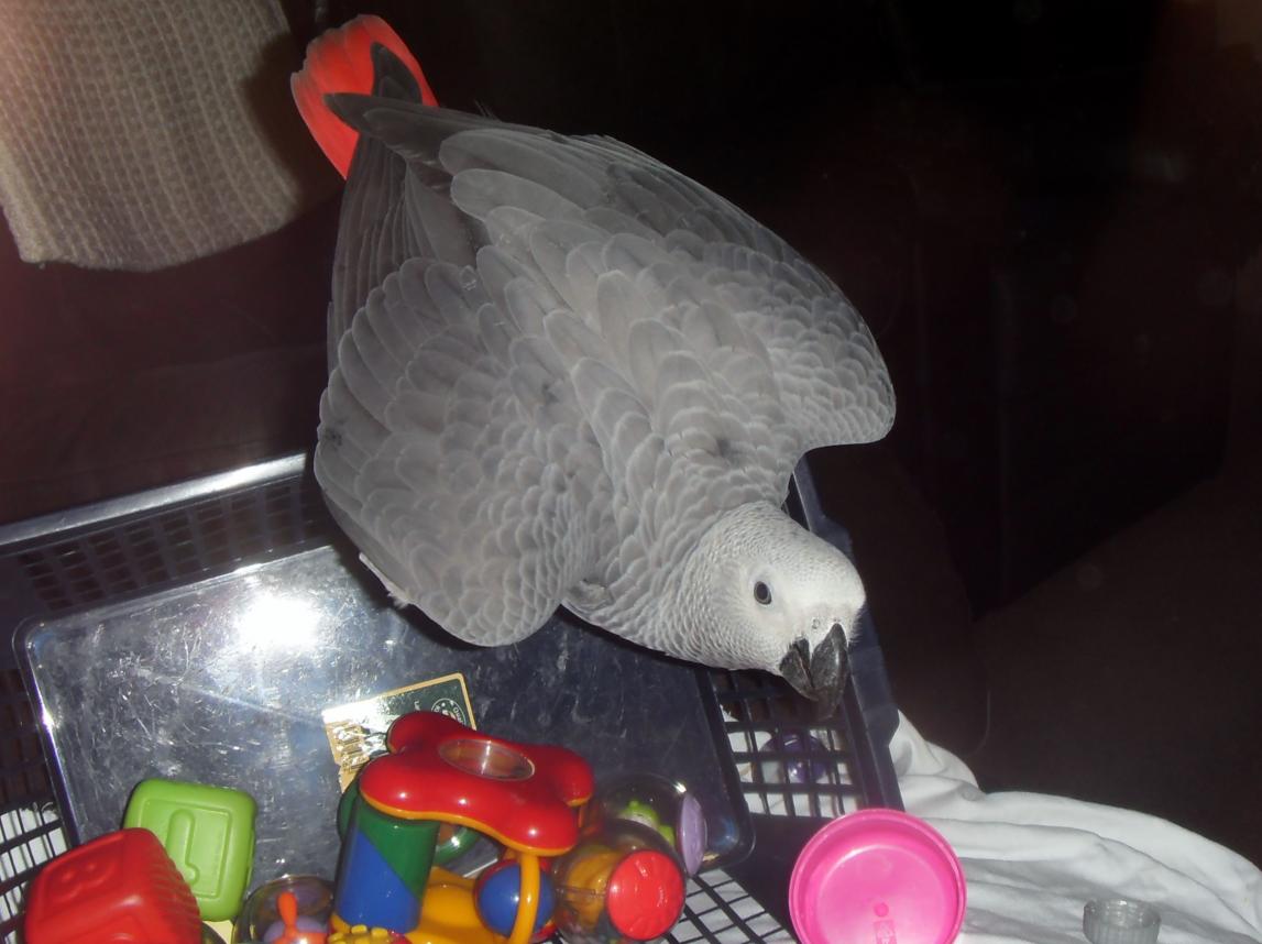 18. Iv just sat watching Alfie age 18 wks old in his cage with a carrott which had still got the green leaf part on it, I had pushed it through bars of cage and within a very short time he has diced the carrott into hundreds of small pieces dont think he has ate any but he sure has had fun, must start and get some pics on here of some of the funny things he does. The joys of owning African Greys!