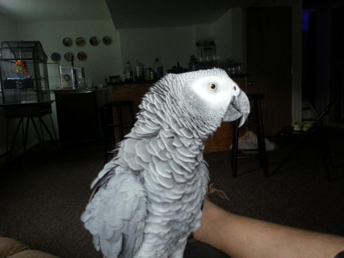 6. Thanks all. Well today was a great day two for all of us and the gray who's name is Lola. I have to say that I don't understand why the prior owner got rid of her. This is the most well rounded gray I have ever seen. I had about 70 people over my house today. They gray took it in stride. She hung out on my shoulder and was having a blast. The prior owner I think didn't know how to feed her. She doesn't respond well to fruit and Veggies. My first gray loved Bananas, Grapes, Pepper broccoli. This one loves seeds. That is it. I am giving her a bowl of fruit and veggies any way and hope she will pick up better eating. She will go up on anyones hand, and I know its hard to believe but I think she is bonding already with me. I took her out this morning and sat with her for about 10 mins doing the up and down training that I learned on my first gray. She did it with flying colors. I put her in her cage and feed her and changed her water. When people came over she wouldn't let any one take her out of her cage. I had to. She would go right up on my hand. She would then go to anyones hand but when they tried to get her off she would bite. Not draw blood but like a warning. I would come up and she would go right up on my hand. When I put her close to my chest she stuck her head right in the middle and open her feathers for me to scratch her. I really think I got a great parrot. Maybe its the Detective in me. Tell me if this story doesn't sound weird. I found her on ebay in their classified area. The price on her was 950. I think that is a great price for an Congo african gray. I contacted the seller. He told me that he brought her a month ago and that the landlord told him that he had to get rid of her or move. I told him that I wanted to look at her. He told me we could meet after work. About 5 hours later, he called me and told me that if I would take her that day that he would drop the price for her to 575. I was already in route to his house and I felt that it was a steep drop in price and I didn't haggle with him. I got to his house and the bird was excellent. Great shape, healthy. The house was a mess. He didn't have a cage. I had brought one already because I knew I was going to be looking for a gray. I played with her for about 5 min's. The owner told me that he had never seen her respond to anyone like that. She was just fine with me. I gave him the money and walked out with they bird. He wanted to put her in a box for me to drive her home. I said no thanks. Got in the car and put her on my shoulder. She drove the whole way back to NY on my shoulder. Everything keeps going through my mind. Why so cheap. I would have paid the 900 dollars. It made me question if she is a stolen bird. This parrot is way to tame and nice . I spent the whole night last night looking up lost or stolen african grays in NJ. Came up with a few but they don't know the band number and sent a few emails. What do you guys think. This bird has a great temperament and behavior. I was told she was about 3 to 5. She looks a bit younger than that. Her eyes are yellow/white not gray/black. Her feet look nice and young, not the older looking scale. I'm taking her to the vet this week to clip her wing and nails a bit. So I'll have her scanned for a micro chip. Anyway. Just checking what you guys think. Robert