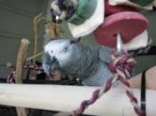 25. I'll do that. I'm hoping to ween him off seed completely too. He is eating his Harrison's pellets pretty good, but I'm having trouble getting him to eat fresh fruits and veggies. He's never had them before. And I'm only giving a little less than 1/4 cup seed a day right now. I'll slowly give less and less. He LOVES sunflower seed and I use that for good behavior. I guess I should attach a perch (maybe rope) from his cage to the play stand so he can go over to it if he wants to. He isn't clipped (at least he doesn't look clipped) but he doesn't know how to fly. I honestly don't think he has ever been clipped, but I have never seen him fly. He will flutter down to the floor, but that's it. He does have a few longer wing feathers on his left side that he doesn't have on his right side. I like that he has never been clipped, but I don't know how crazy it would be if he learned how to fly.