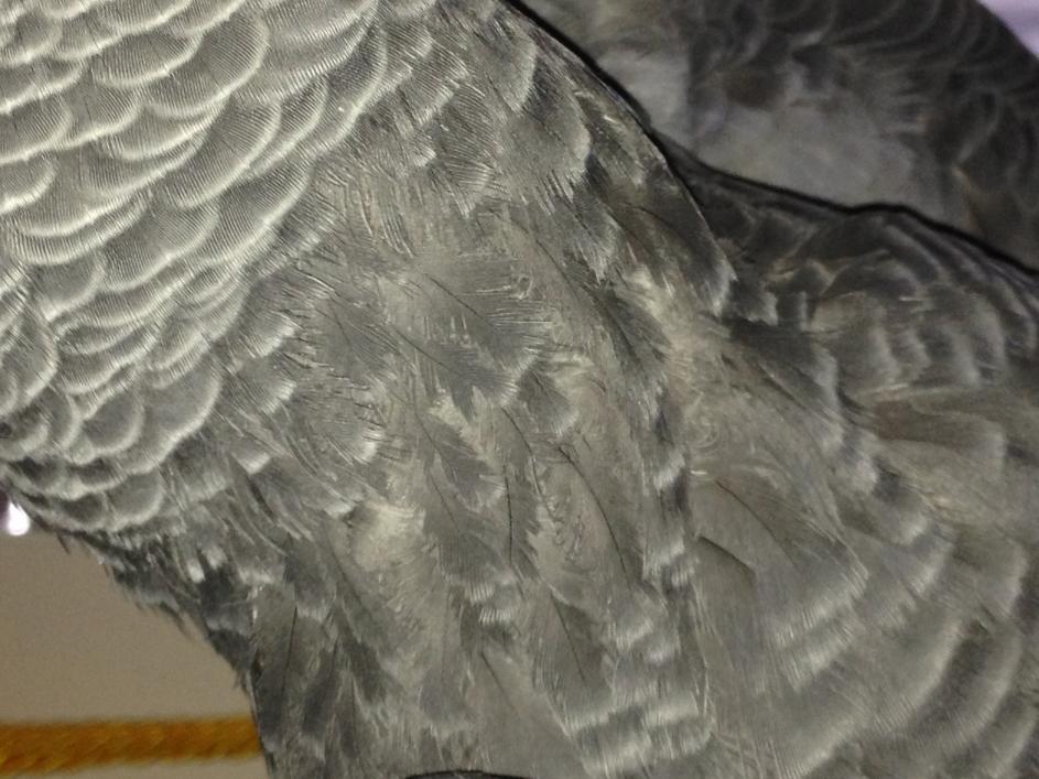 6. He won't fluff his feathers for me But I'm wondering if this looks normal-ish? They look like each individual one doesn't get as much attention as his other feathers. -shrug-