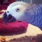Dutch is quite stubborn, but very entertaining! I still can't handle him, but he has no fear of being close to me. He follows me around and sits right beside me. He has a fascination for getting close to my face, which I am not comfortable with. He was on my shoulder once. I don't think he knew what he was getting into though. I was leaning against some pillows when he climbed up on them, then down on my shoulder. He just stayed there. I even got up and walked around. He seemed nervous, but not as much as me. I was convinced I was going to lose an ear or eye, but no, he was great. I was surprised at how well he behaved and that he wasn't aggressive at all. He hasn't shown interest in doing it again, and that's fine with me. He does let me rub his beak even when he's out of the cage. His fear seems to be of my arm. He will not step up to my arm, and definitely not a perch that I'm holding. He is learning all kinds of new songs including Lady GaGa's "Poker Face"..pretty annoying song but he likes it. He also whistles Iron Man. I am learning to identify many bird calls. It seems that he and Emmy have learned a lot of bird calls from living in my grandmothers house. She has owned and rehabilitated many animals through the years. So far I've caught on to robin sounds, dove cooing, owl calls, cardinal calls and sparrow chattering. They also both make sounds like a dog...not like real barking but kind of how a child sounds when they imitate dogs. It's pretty funny. I've heard of greys "barking" so I wonder if that is what I'm hearing. They also do a lot of screeching. It doesn't bother me too much but if I'm too close it hurts my ears!