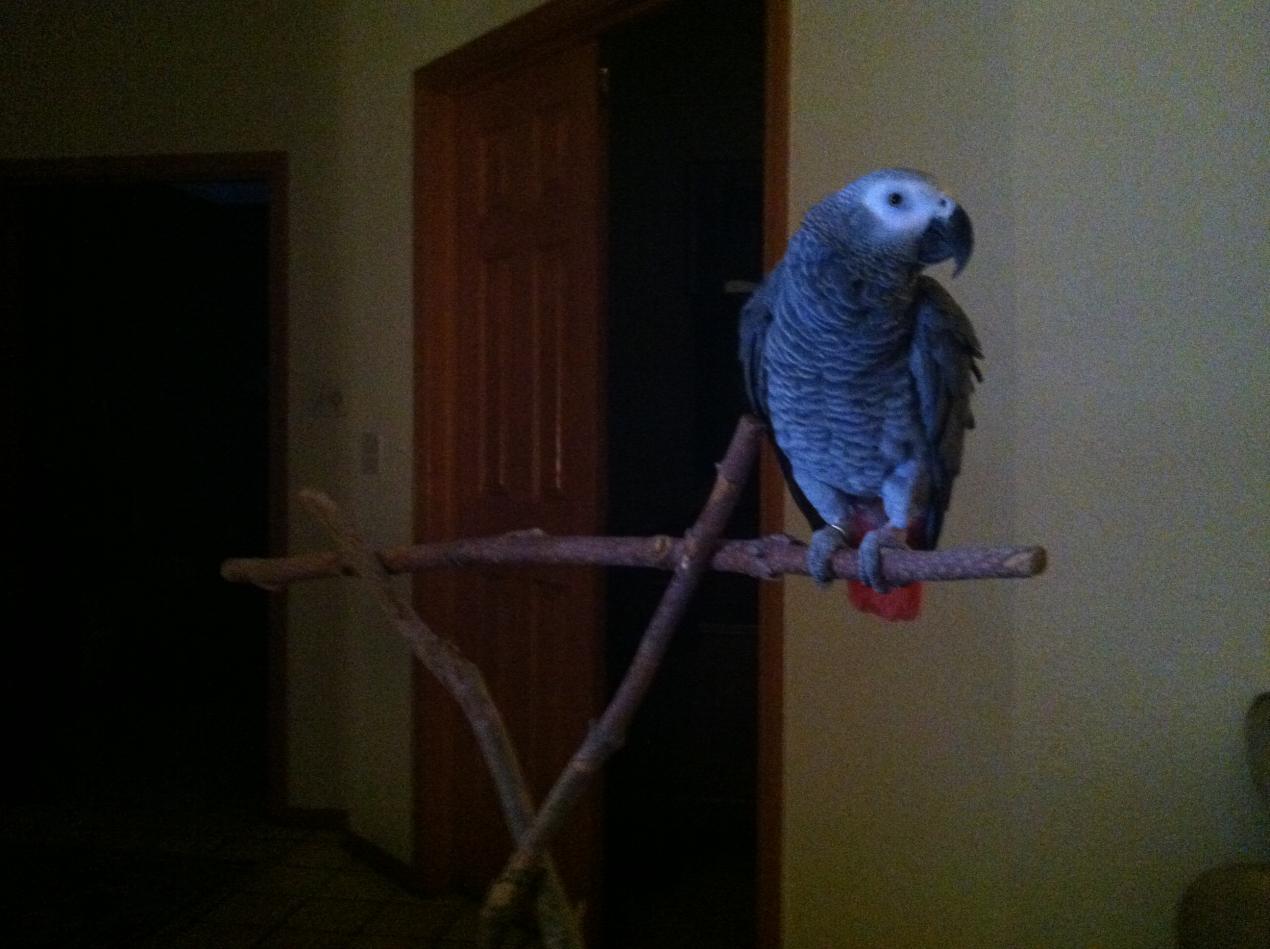 wow, what progress. To catch you up: husband is deploying this week for nine month. Did not let Jelly Bean out like I usually do today. Oh the repercussions....he is not a happy bird. I put food in his cage and he tries to bite me. Had him out this afternoon, just the usual. Then I put him back in, because I was cooking and did not want him to get into trouble. Then it happened; he is calling out insanely as I am switching to night clothes. Usually I do not let him out after he does that, ( do not want to encourage it), but I can't help and put myself in his position. He just wants to be with me! So I approach the cage and he is doing his head bobbing and I can't help to let him out. Then I talk to him some more and he starts to regurgitate for me. I am amazed and speechless......