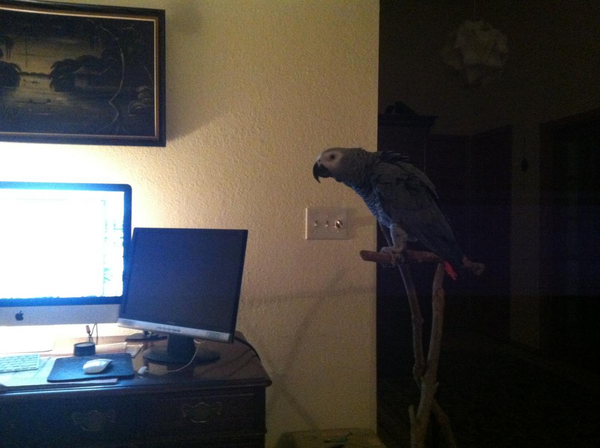 Again, I am confused; I feed nutri-berries and tried ZuPreem Nutblend. Jellybean hates the ZuPreem. He will eat the Nutri-Berries any time of day. He gets unsalted roasted nuts, almonds, every day. The fresh varies;beans, maybe some sweet potatoes with red palm oil, whatever else is in season. He really likes the hot peppers. I know they don't taste the spice, but he seems to like them. This is why I am confused; everybody seems to feed something else and swears by it. Which diet is the "right" one? Jellybean at one point in time ate dog food. He stole it as I got the dog food dishes ready.