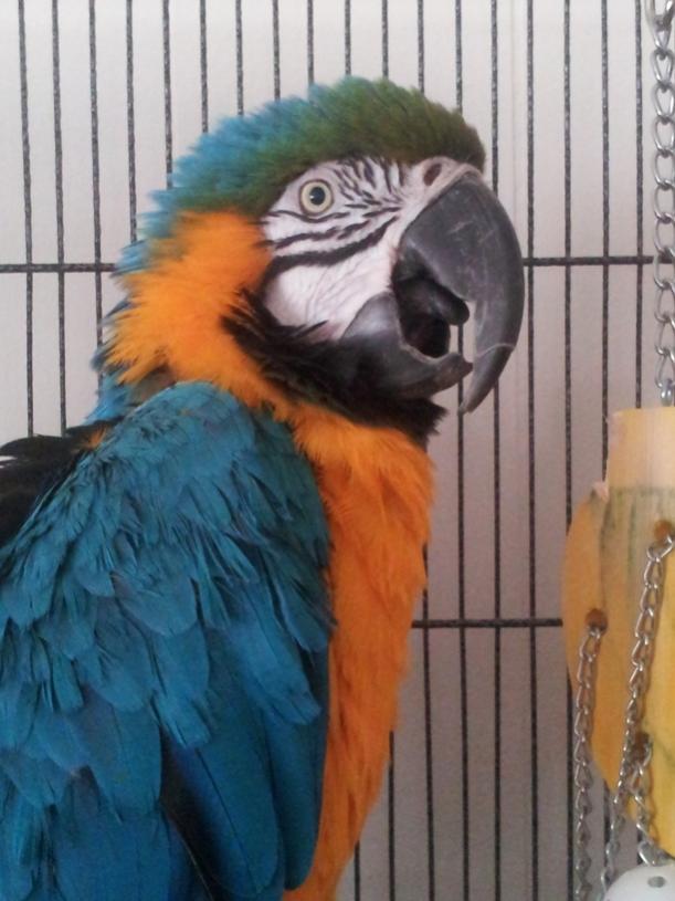 People.. I need therapy! What is wrong with me? I'm totally going nuts because my newest grey hates my guts and what do I do....I take in a needy B&G Macaw..... He's beautiful and still getting used to his surroundings but people ...please tell me why I cannot say NO!!!