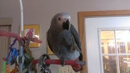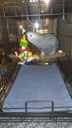 12. So Loki came home Friday afternoon. He was pretty chilled out about the change of home etc and was playing and exploring any toys we gave him etc. Ate pretty good for me for dinner Friday night. Saturday was another story. We did not have the most stellar day. He was cranky and wouldn't eat very well for me. I think the biggest problem was that both of my daughters were home this weekend for a visit and he was passed around quite a bit, just didn't get the rest he should have had and I think it was all too much for him after JUST coming to a brand new home Friday. Even though he was seeking out the attention, I think as a new mommy and first time big bird parront, I just didn't monitor or handle that whole thing the way I should have. By Saturday evening he would barely eat for me and was VERY LOUD and cranky, where before he had been his regular self that I've always known, laid back and chatty and sweet. SO.....I laid down the law with the girls and told them I was putting him to bed and he was NOT to be disturbed at all and I didn't want anyone talking to him or even walking past his cage. Sunday morning he was much happier. Still didn't want to eat very well, but I think he was missing his sprouts which I had not had time to get all the way done yet.....but we got through it and I made sure he was loved on and everyone got to play with him, but that he got time in his cage to rest as well. Also on Sunday, both of us had a shower of sorts. In other words, he went nuts fluffing and fussing when I had the kitchen faucet on, so I tried to see if he wanted in the sink, that would be a NO, but he climbed on the spigot and leaned down for a bunch of drinks then got frustrated fluffing up and fussing but not getting wet so I got out the spray bottle and he alternated fluffing and eating up the spray and then climbing up my arm to my shoulder and shaking it off before running back down to my hand for more sprays. We were both drenched, but he seemed happier after the bath. The only issue we had was him suddenly trying to fly off of me and FALLING HARD to the hard wood floor, which nearly gave me a coronary. Also added to my feelings of inadequacy as a parrot mommy..... This morning was touch and go....I had to come back to work. I have to leave the house by 6:45am to commute to work, and I sort of had to wake him up to try and feed him breakfast. He at a couple of sprouts, literally a couple, and two bits of some cereal (baby rice cereal), one bit of cooked pasta and that is it. Then tried to fly up to his basket I have in the kitchen for him to hang out with me on. But I didn't have time for much else and had to put him back in his cage, get dressed and head to work. I went ahead and put his dish with his food in his cage, I didn't know what else to do. He also has pellets and water in there. Anyhow, I've been reading and reading about how to do all of this, but I still feel like I just can't get it right. I hope it will smooth out as we get a routine, but the early morning rising and leaving out I have to do has me worried, since he was still asleep. I will only be at this job outside the home for another few months, but I hate to think I'll have him all messed up and stressed out by then. Idk, my daughter and I both had some kind of stomach virus all yesterday afternoon and evening, maybe I'm just over tired right now.