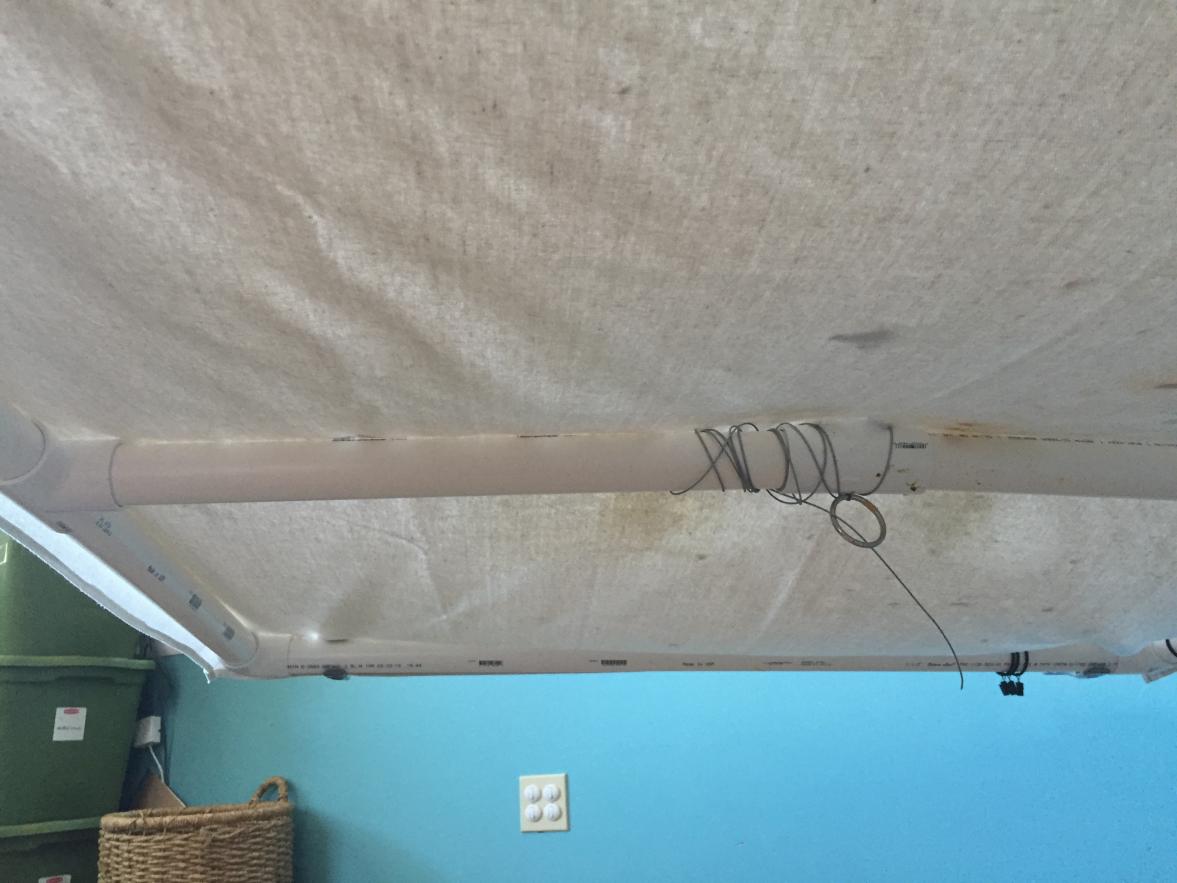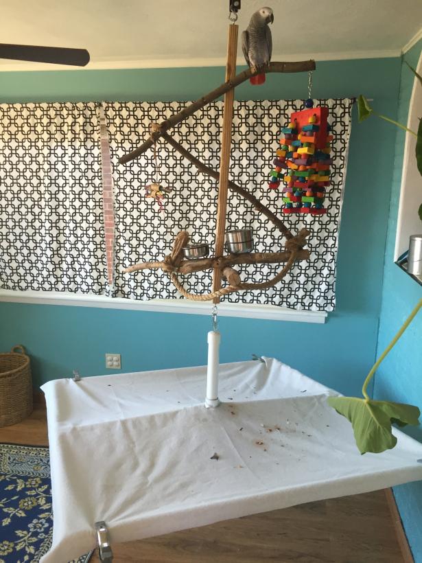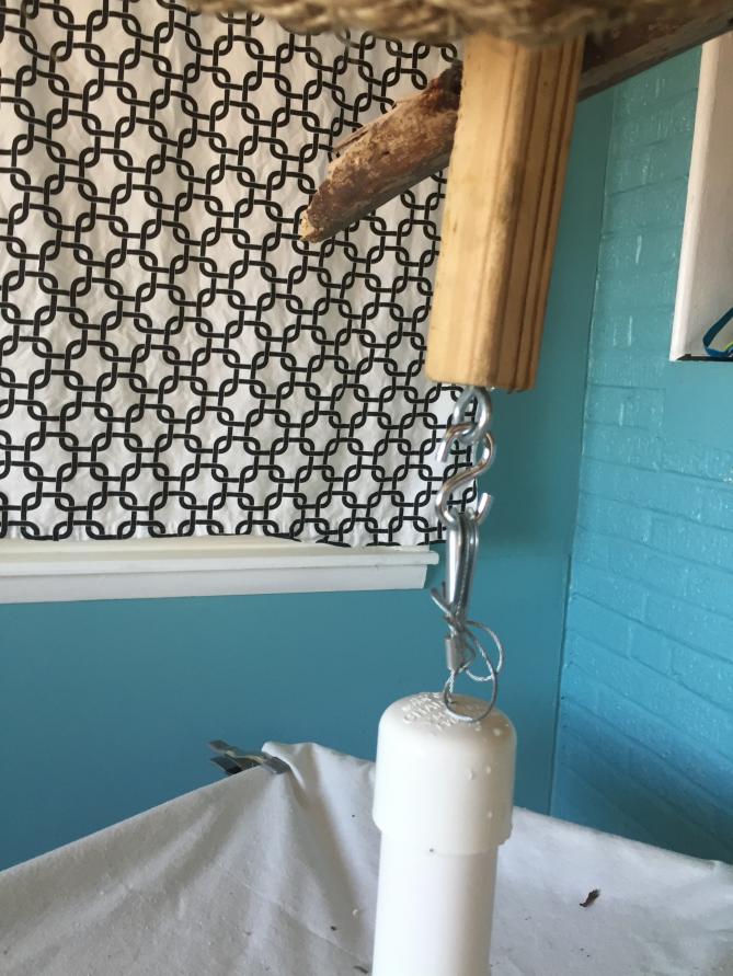 -I also didn't want Adrienne to be able to be in contact with the PVC, so I made the center stick to descend far enough down that it would discourage her from climbing down it. She has not gotten on the debris-catcher yet.