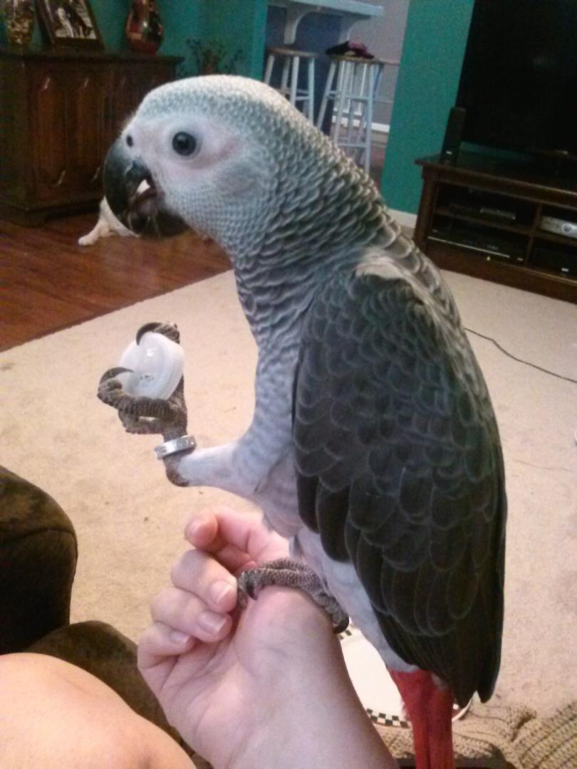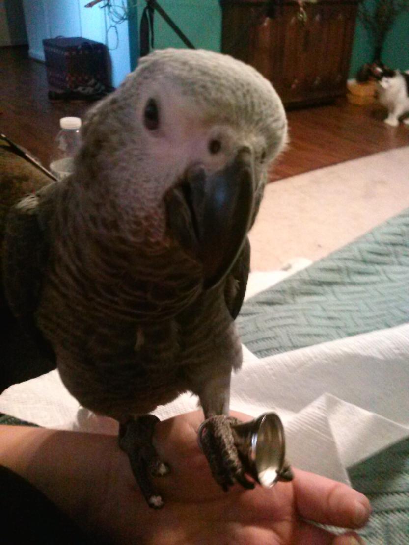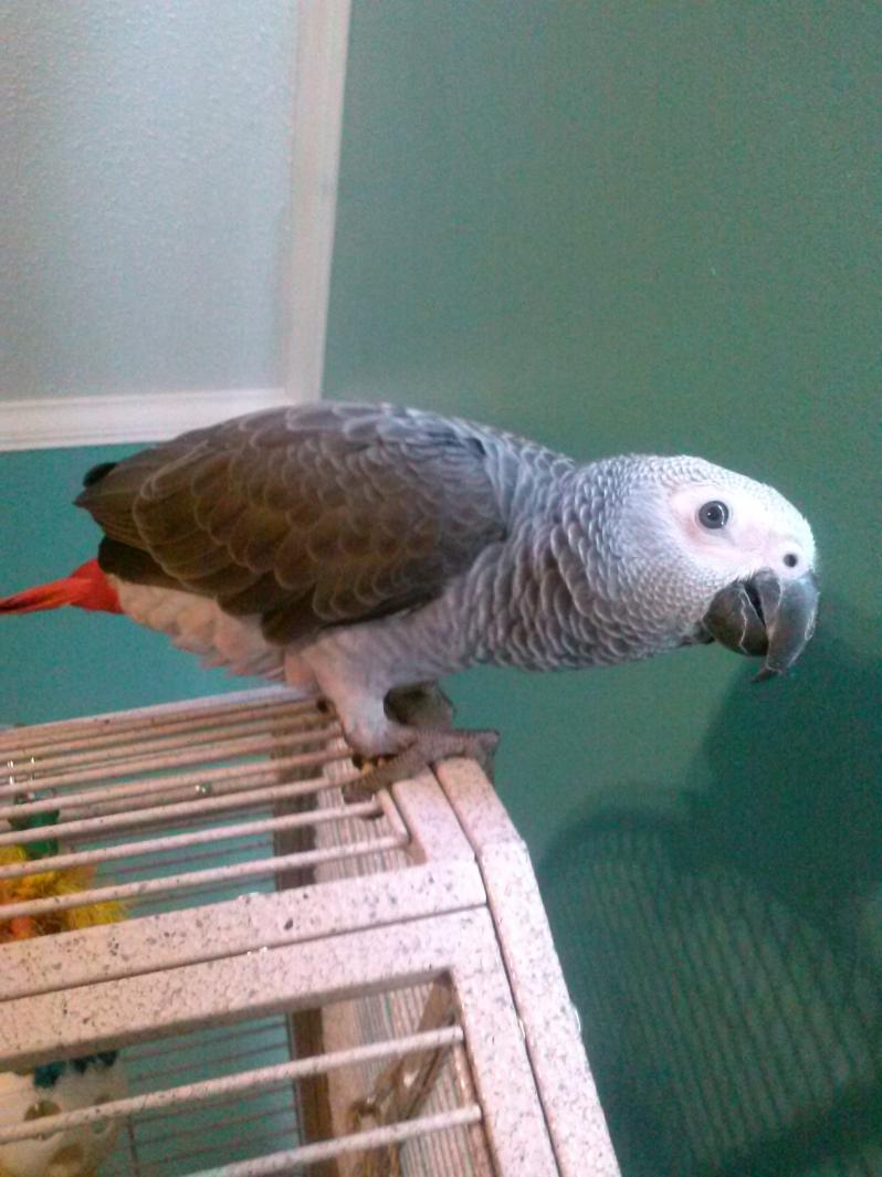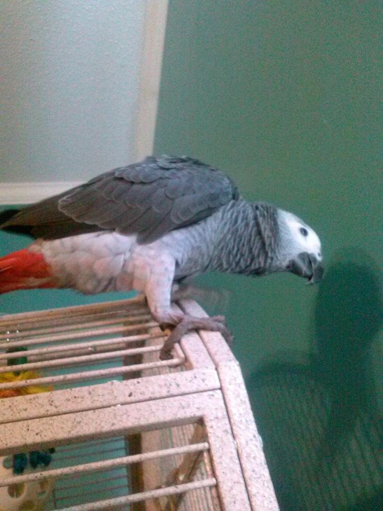 kins2321@yahoo.com Thanks I just want him to get used to a bunch of different toys while he's young, so far he loves every toy he can get his beak on :-) . I actually got his name from the mass effect game, his characters personality is very African grey like. And yay I am so happy I moved his food up and now he has been chowing down in his cage lol