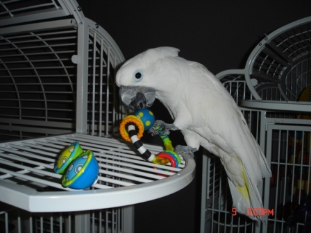 While I was away at summer camp with my son and his boy scout troop, one of the men at our local VFW passed away. It was not a well known fact that this man had birds, much less an umbrella cockatoo. Cutting to the chase, Dad called me at camp with tons of questions about caring for this bird. The members of the VFW were trying to do their best by this man and his winged friend until the family could get there. Unfortunately, I was five hours away and the best I could do was tell them to make sure he had plenty of food and fresh water at all times, and to try to sit with the bird during this obviously stressful time.