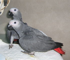 chelseaB Posted August 18, 2009 Posted August 18, 2009 Hello, I was able to spend some time at the breeders with my baby grey again last night. I can't believe how quickly they have grown! Their colors are dark, does their color seem to change as they age? They are very sweet & curious, love attention! Should only be a week or two now before I can bring "it" home, DNA should be back this week! Everything's all set-up, just waiting for the baby bird!