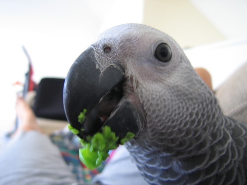 Guest Lidia Posted August 9, 2007 Posted August 9, 2007 Dan and Makena, excellent photos! Makena gets two karma points, on the basis that Makena's beak is messier than Dayo's, but Dayo gets one point too! They are both such cute babies! I ought to have taken a photo of Joshua this morning, because he had porridge all over his beak, under his chin and a blob on his head. Dan, I think you made the right choice about the female. One grey baby = a lot of work. Two grey babies = a lot of work cubed!