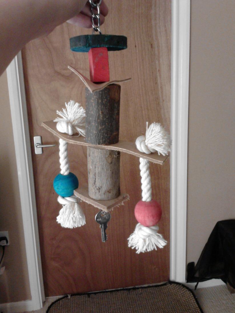 Coral&Andrew Posted October 7, 2010 Posted October 7, 2010 (edited) before you guys think im clever, i bought these toys - didnt make them lol i like them cause there mostly wood, and im glad i found her a spiral toy which i wanted to get her, if you notice theres toy with a key at the end of it - i bought the toy from the petshop thought it was abit odd, or is it part of the toy ?! noticed the key looks blunt but none of the other toys in the shop had a key maybe its the key to the pet shop lol, anyways we will be buying more soon, cause my boyfriend is on about making her a play stand made of different kinds of wood. Edited October 7, 2010 by Coral&Andrew