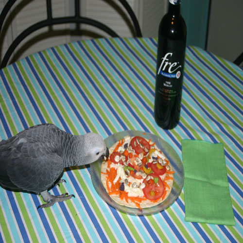lovemyGreys Posted September 1, 2007 Posted September 1, 2007 BIRDY PIZZA I Thought the bird food room needs a competition & this one is fun for all ages. You need to make your bird a pizza. I want to know what your base is made from & a list of ingredients. Karma will be awarded for: Presentation, additional karma for a photo. Imagination, Naming your pizza, Additional Karma will be given for a photo of your bird eating your pizza The competition will run until the 1st of October, so everyone has time & no excuses ! We will have a final vote at the end for the overall winner. Here's mine just for an example.(mines not included in voting ) Rice cake base,peanut butter,walnuts, carrots, pumpkin seeds,dried peas & dried coconut. Alfie tucking in Post edited by: lovemyGreys, at: 2007/09/01 16:49<br><br>Post edited by: lovemyGreys, at: 2007/09/01 17:29
