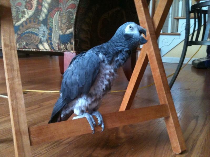 katana600 Posted December 16, 2011 Author Posted December 16, 2011 Gilbert was in rare form this morning for photo opportunities. When I went back to the kitchen, he climbed down to follow me. As usual when he decides to have an adventure, no sooner than he gets down, he seeks out his favorite "roost". It is a portable folding tray table. Even though he is only two inches off the floor, that is where he will go and wait for me to notice the silence that indicates he has gotten the nerve to come down from his cage door to the floor. When I come back into the room to fetch him he quietly says "hey" very nonchalantly. It is endearing. If I am going to be more than a room away where I can't see him, I will close the cage door since he is becoming more adventurous. Every day I think it could be the day when he decides to take flight.