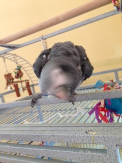 katana600 Posted May 12, 2013 Author Posted May 12, 2013 We got a new puzzle/foraging toy for Gilbert and when I set it up this morning, he went right to it and pulled out some pistachios. When I tried to get a picture of him, he was not keen on being in a photograph in his little fuzzy underwear. What was really the best thing is how long he sat frightened of everything and now he went to a toy and successfully got a few treats out of it within an hour of it being set up on his cage. Then, instead of shaking and trembling when I approached to take his photo, he was "proactive" and afterward he even let me scratch his head... once he was back inside with bars protecting him from me, LOL. He's come a long way and he still has a lot of time to improve... or maybe I do.
