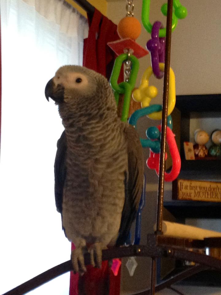 Cinnyminis Posted December 25, 2012 Posted December 25, 2012 Hello all! I am new here and a new grey owner. Radar is 14 weeks old. He is such a delight to our family. I can tell that even as a baby he will be a real character as he grows up! He insists upon floor time with toys several times a day. He squawks at his shadow, growls and pounces on toys( small wooden beads, wooden sticks, and cardboard bagels are his favorite). Just this morning, when everyone was still in bed, I heard him start his usual chirping, and then a squawky parrot sound, and then clear as day he said.. morning.... hello... morning.... and went back to tweeting before going back to sleep. He has no lack of conversation, as I have seven kids and we chat to him constantly. While on the floor, he just recently started making mad dashes down the hall to the bathroom. I cannot figure out if its the mirror or the perching on the shower rod he is after. I have noticed he has gotten rather defensive around the kids, especially when he is tired. The kids poke their fingers at him way too often and we are in training with the kids to stop that. One thing that I find amusing, is ANYTHING newly introduced, he decides it is EVIL and he wants nothing to do with it. I bought a play top to keep on the floor for him and he would not even look in its direction...that was until I put his favorite food on it.. he snuck up and extended his body as far as he could reach to grab at the food, growling the whole time.. kinda like, "FINE, I will take the food but I WILL NOT LIKE IT!" Today he explored the top just a bit with his beak. I think in another week he will be all over it. Anyways... That was a Radar introduction. I have found this site very helpful so far and look forward to reading more about these special birds.