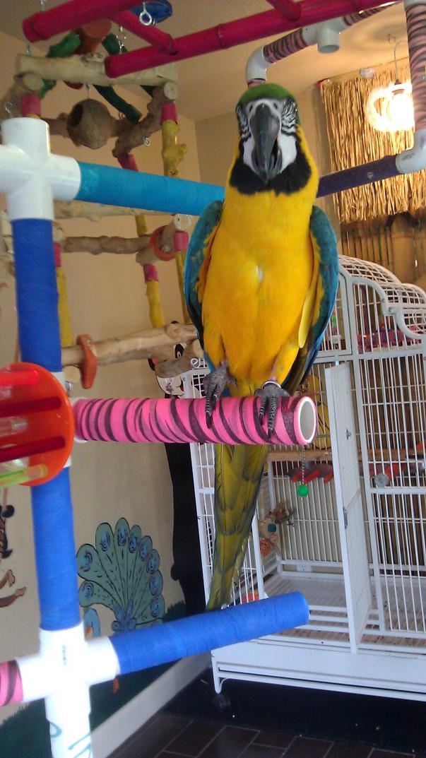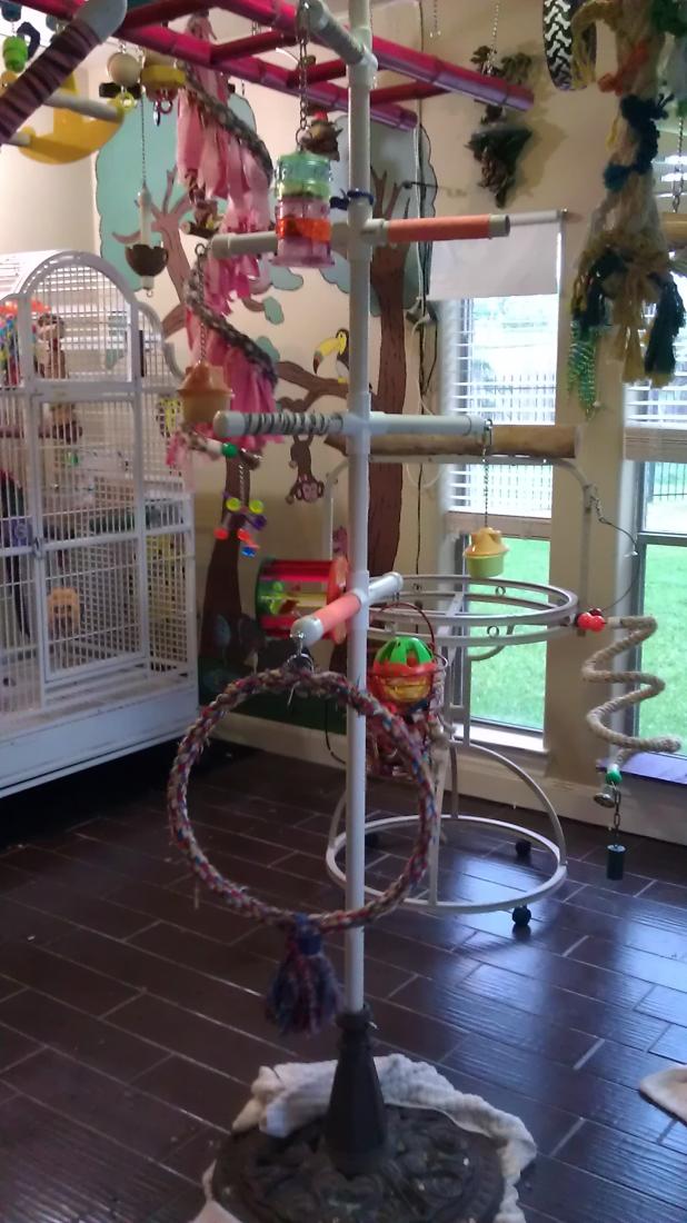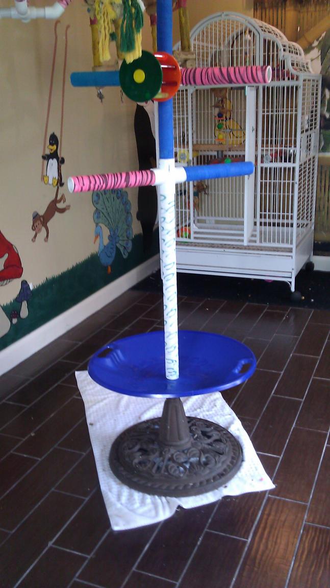 carolz7 Posted May 11, 2013 Author Posted May 11, 2013 I wanted to make something where i could put all the foraging things in what area for my birds. It is not complete since i made one yesterday out of 1 inch pvc but it was too flimsy. So today i remade it with the big pvc. Still need to add the end caps and then all the foraging stuff. Will show when completed but here is what i have so far. Enjoy! The bottom picture is the one i made before but was not sturdy enough