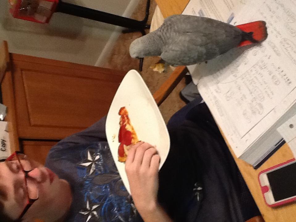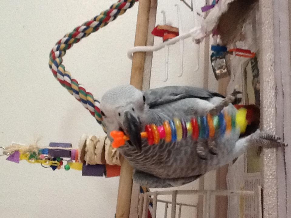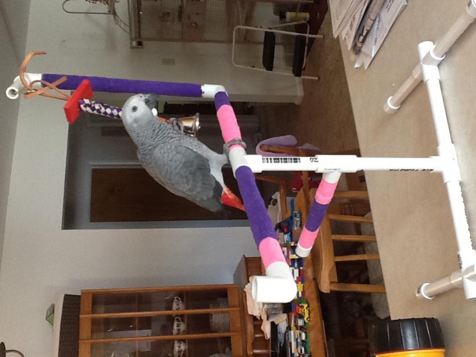Michellec Posted October 6, 2013 Author Posted October 6, 2013 Nala does have the sweetest face! We all miss her during the day when we are all at school (husband and I work at the school). We've been working on all the behaviors the aviator harness says you need to get your bird a accustomed to....and while Nala tolerates all of us working with her, my 14 yr old son (the one doing the homework in the pic above) can get away with anything with Nala! He is the person she latched onto in the bird shop and is why we brought her into our family instead of the Timneh that we thought we'd get. Life is so much brighter with her in our family! Yesterday we made her a play stand so we can move it from place to place. Attaching a pic. (Not sure why all my pics post sideways) Have a great Sunday!