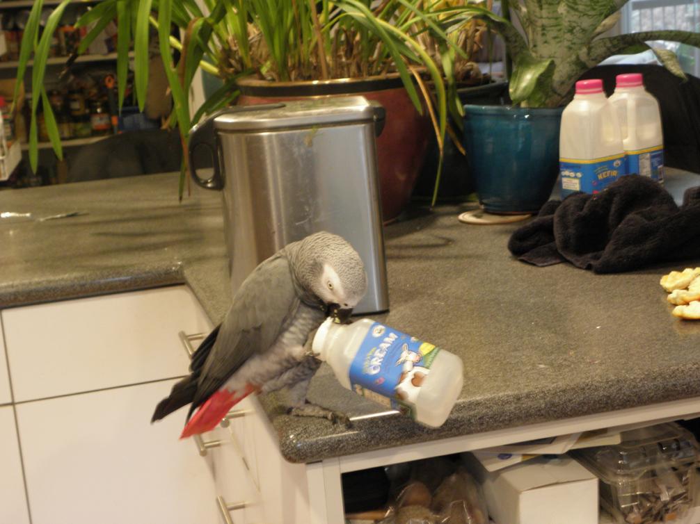 chezron Posted March 3, 2014 Posted March 3, 2014 Brutus helped me in the kitchen yesterday. As I was baking a cake I lined up things for him to "help me with" to keep him busy. First, he removed the top from an empty container of cream, then he removed the knots from the string ties in my produce bags, then he dropped all of the cloth shopping bags, one-by-one, on the floor, then he removed the tissues, one-by-one, from the box, and finally, he shredded the peel of a recently eaten orange. He was a big help! After baking the cake I had to clean the floor of bags, tissues, and orange peel. Thanks Brutus! I bet your grey is a big help in the kitchen too.