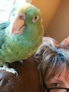 I would like to introduce my newest addition to the family. I adopted a panama amazon that is 32 years old. She is absolutely adorable. I never thought i could take in older birds but she has totally proven me wrong. When i picked her up they were handling her with a stick. She sits on my shoulder and gives kisses and is just as sweet as can be.