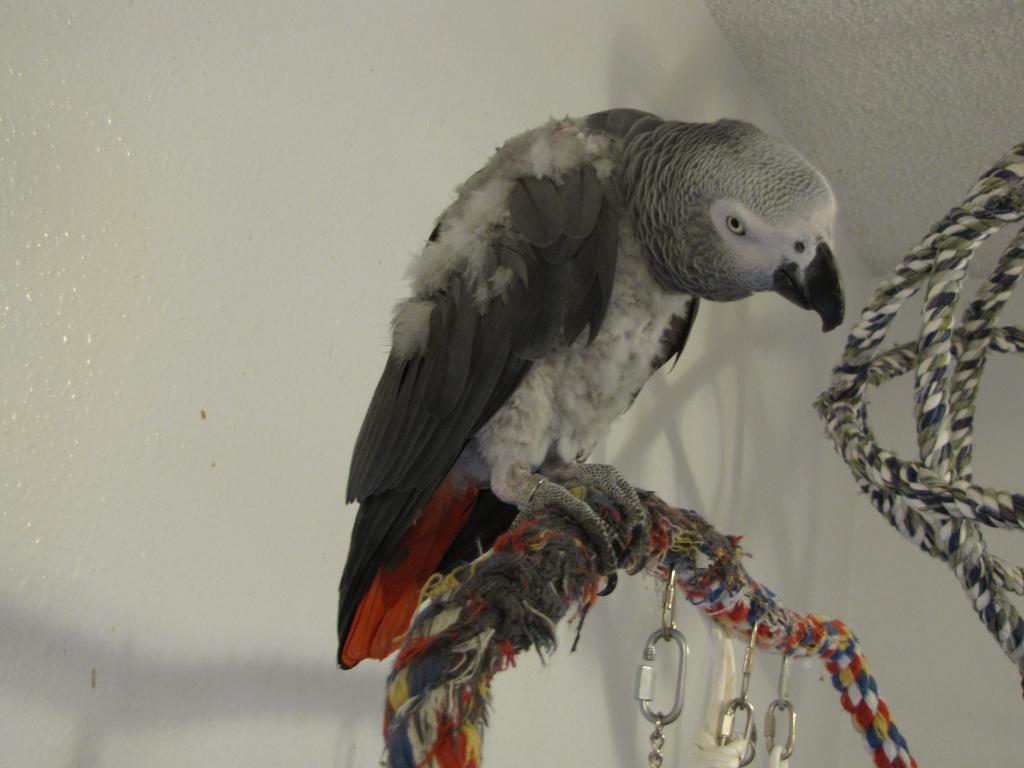 Elvenking Posted June 26, 2014 Author Posted June 26, 2014 (edited) I realize I may be sailing a little close to the edge, here. You seem to have acquired a nice Zen state & I really don't want to upset that. I'm sorry to say it, but a naked tummy means he's slowed down, again. I know I practically just finished telling you to be patient. But this is a juggling act between trying to figure when to be patient & when to be pro-active. This is a very good time of the year for molting. Kura was behind Isaac by at least a couple of weeks & she's a little moth-eaten yet, but pretty much all filled in. All she's gotten besides a hormone reduction (yay!!) is some extra water baths & outdoors time. IE sunshine & mental stimulus. (I don't use aloe on her on a regular basis because it gunks up her fur feathers) Now, maybe, it's time to look for something else. I'm wondering what you're feeding the boy. Theoretically, it can be the very supposed best'est stuff, but maybe there's something in it that doesn't agree w/Isaac. And my first guess would be that dyes could be the culprit...? Maybe 99 out of 100 fids don't have a problem w/them. But I wonder if Isaac is that one in a hundred. And people food? You guys are such good buddies, I'm kinda thinkin that unless he's just not a good eater, he'd ask & you'd cave. Not judging! I promise. lol I'm just trying to look at the big picture. Because of what I've seen w/some of my guys, I've really become convinced that anything fids put in their little beaks can contribute in large part to their issues. Yet somehow, it's something that gets over looked surprisingly often. Yeah....well his tummy is not naked...its really fuzzy. Feathers just have not been sprouting over the past two or three weeks...no new ones at all. Like I said...there were about 5 or 6 feathers on there he was leaving alone for a while...then he did em in. As far as food....Isaac gets a few things. He gets some scrambled eggs about twice a week, I do pasta whole grain and regular mix with a little touch of red palm from time to time. When he eats with me...it's rice, he loves chicken...he dips his beak in my cereal bowl a little too for some milk. He gets a bowl of veggies in the morning raw....apples, carrots, broccoli, corn. Sometimes he will get a little triscuit cracker....cheddar cheese. I am not a real good cook...and I am yet to simply find a recipe for bird chop that can actually be followed. He does still get a bit of his baby food from way back which is the Exact formula...I figured it was a good supplement and he simply goes wild for it. Any help with a diet would be great...sure. I am out of options and figured that I just have to wait for the additional sun to take effect....I don't know....who really does anyway? I am soaking him with Feather In, he is under the sun lamp all day from 9AM to 6 PM....I have a humidifier by the cage. He still tries to feed me every single morning. Man...what else? I called the avian vet and can take him back for another exam. I do not have options that I know...so let me know. Everyone says "It is the big unknown problem with Greys...they just pluck."...so that is where I am headed. No way to learn...no way to find out. Here is a picture of my lil buddy now. Pretty much exactly like he was when I took my last pictures....ravaged and abused. Wish I could help little guy. I really do. Edited June 26, 2014 by Elvenking