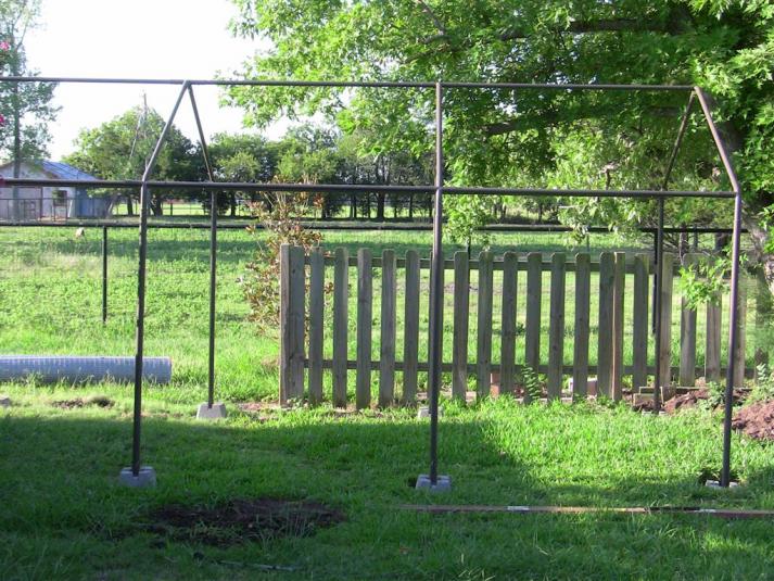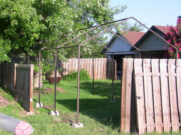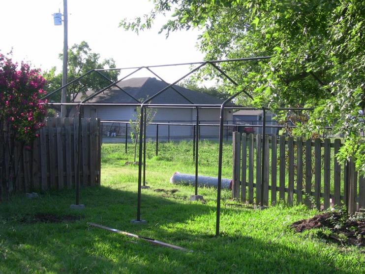SRSeedBurners Posted August 25, 2014 Posted August 25, 2014 (edited) By the way, this is the 'Costco carport' which I detailed in the 'Costco Outdoor Aviary' thread. Step 1: complete - Setup the structure in various places and see if we like the placement. We bought two of these intending to set them end to end or side-by-side. They turned out to be a LOT larger than I anticipated sitting in our backyard. Although we live on two acres, the available spaces I have that I am comfortable with keeping my babies is limited, i.e. as close to the house as possible. We originally set it up next to the house inline with the covered back porch. We finally decided a pergola type aviary would be much better suited for that space. So we decided to knock down a corner of our immediate backyard fence and place it in the corner under a tree. We're pretty pleased with the location. Step 2: complete - Bury the concrete footings, square and level I assumed this would take a few hours. It took a whole damn day from 5:30am to around 6pm. I was beat. It's good that GreycieMae was available to sit in her supervisors quarters and assure that things are built to specs. Edited September 23, 2014 by SterlingSL
