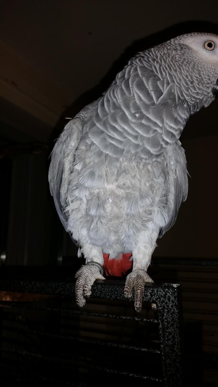 Nighty Posted March 27, 2015 Posted March 27, 2015 Firstly its my first post, Hi everyone I have an African grey its turning 2 years old next month. Quick run down the bird was perfectly normally around 7 months ago we swapped him into a bigger cage, which one day he dropped and broke most of the feathers from his wing, A vet pulled the broken feathers from him, few months later he was up and flying again. about 1 month later he broke them again inside the cage. The growing process of these feathers this time around has been very slow. What I'm worried about is that the feathers on his chest throughout the last month, have been messy, all over the place (picture attached). For the last few days the feathers on his tail haven't looked right, they looked like they were 'stuck' together as such, can't explain. This morning he pulled quite a few feathers from his tail was quite a mess. Should I be worried is there something wrong with him? He spends at least 10 hours a day sleep, he spends at least 6 / 7 hours of the day outside of his cage on his play stand our playing with us. He talks, sings, whistles seem normal to me. Thanks, Any help more then welcomed. Elvio