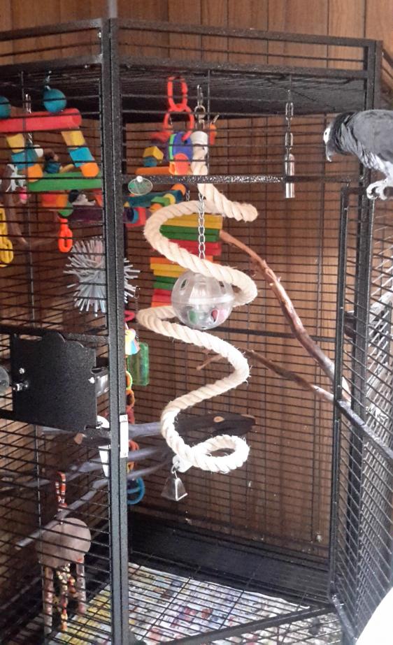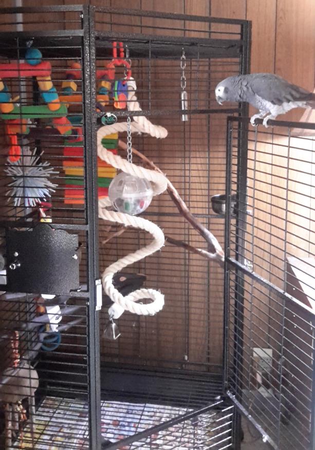 birdhouse Posted April 21, 2017 Posted April 21, 2017 (edited) Yep. Done deal. Phenix has new digs. For some unknown reason, he's acting like this might even be a good thing, too! I think the hardest part of this little saga finally seems to be all but over. For the most part I'm cautiously optimistic & very pleasantly surprised! That first day looked like every other time he's had to move. Only it didn't exactly. He was surely scared. But he seemed more PO'd than normal. In fact, I stuck my fingers thru the bars & let him chase them around w/murderous intent to get him acclimated to the cage initially. He got the full tour that way, in spite of himself. But he still ended up cowering on his food cup by bed time. Just like always. By the end of the 1st full day though, I could have sworn I heard the bell on his new boing...? But I wasn't actually sure until I caught him on it the next morning. I had to be very careful not to let on that I was so excited because that was a very big deal! The 3rd day was the first time I opened the door. He wasn't acting like it would be extremely cruel for him to find out he'd have to be going back eventually. It surprised me when he didn't come off the cage. He just sat on the door checking out the new digs from there for a long while. When it was time, I asked him to go in & he did. Just like that! This is far, far & away, the very best move e..v..e..r!! He still hasn't gone near the top rear of the cage. Pretty sure he's afraid of the wood block ladder. But I do believe he'll overcome even that eventually! Otherwise, he's already like 80% settled in & that's mind blowing! The cage itself was fairly surprising too. It's an A&E CC3232. After Steve got Isaac that giant 42"(?) corner cage, I was thinking this one might be too small. But Phenix is a TAG. So it was my compromise for up-sizing w/out going crazy. It's only about 25% bigger than his last cage. But what a big difference in the available space! One of the quirks is that these cages photograph "small". There's actually plenty of room between every branch & toy even though the pics don't look it. Speaking of quirks, there are 2 ginormous, would-have-been-deal-breakers for me. The floor grill & pan are 1 pc which can only be accessed from the rear. You know, the part up against the wall!! Who does that!?! If a cage isn't rectangular the bottom is a 2 pc design, **accessible from the bloody front of the cage**! It's like an unwritten rule!! This is such a big problem in a confined space like that little corner. Nothing to do but try to live w/it for now. But it could potentially prove to be a fatal flaw in the long run. The other fatal design flaw is that installation of the gym & tray seems to be necessary to its structural integrity. I think the grill is meant to sit under the tray & be held down by the 2 perches being bolted on. I say "I think" because the only use those directions have is fire starter material for the grill. I didn't want to block the light & view w/a tray. Phenix isn't going to tolerate perches overhead like that anyway. Also we'll have an all out war going when everyone starts trying to land on anything that there & tempting them. So I've currently got lots of things to weigh the grill down for the time being. Eventually, I'll find something washer-like (but thicker) to pin the grill in place so Phenix won't be able to push it even if it's not weighted. But here again, what were they thinking???? If it weren't for that, I'd give this cage 8.5/10. It has more room than a standard 23"x32" cage. Not quite as much as a standard 28"x36" cage. But feels tons more spacious inside. There's certainly more than enough room for a little TAG who seems to like a more cozy living arrangement. Also its footprint just works better in the available floor plan. Or would if not for the stupid litter tray. The quality is decent & it survived the trip well. No bad welds or bent bars. The bars are nice & solid. The heavy perches didn't phase them. Nice sized door. Fun to set up. Although I am still working out the feng shui & newspaper placement. ") Edited April 28, 2017 by birdhouse