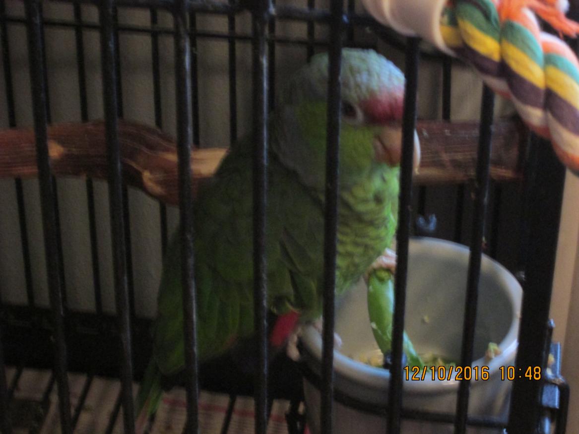 Sadie has corn-colored beak, red coloring over her beak, is green and has red on her wings. When I first got her I posted a picture so it's here somewhere. She is a Lilac-headed Amazon.